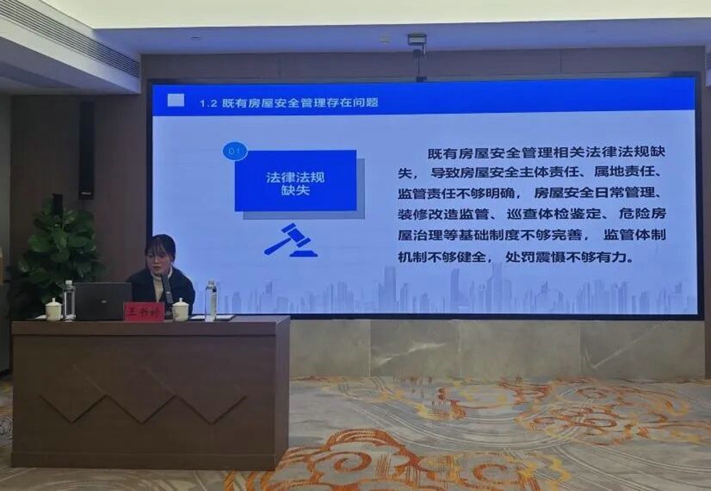 宜昌市住新局房屋管理科科长叶勇、宜昌市房屋安全鉴定管理中心主任李钒到会指导,市住新局房屋管理科王书婷向房屋安全鉴定企业宣贯了“房屋安全三项制度”有关精神