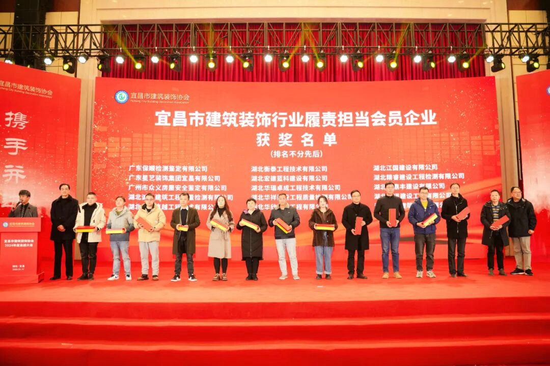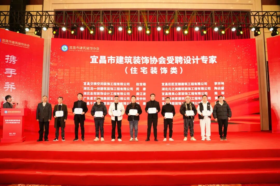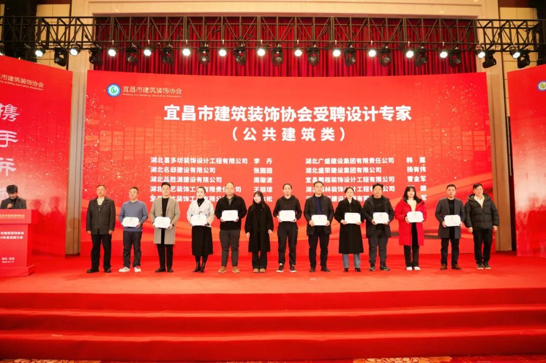 会上,市建筑装饰协会为获得“2024年湖北省优良建筑装饰工程”的16个项目颁发奖杯和证书;分别对2024年度宜昌市建筑装饰行业突出贡献企业、宜昌市建筑装饰行业履责担当会员企业、宜昌市建筑装饰行业爱心捐赠企业、和宜昌市建筑装饰行业诚信品牌供应商予以表彰;并为受聘宜昌市建筑装饰协会公共建筑类的10名设计专家和住宅装饰类的10名设计专家颁发聘书。