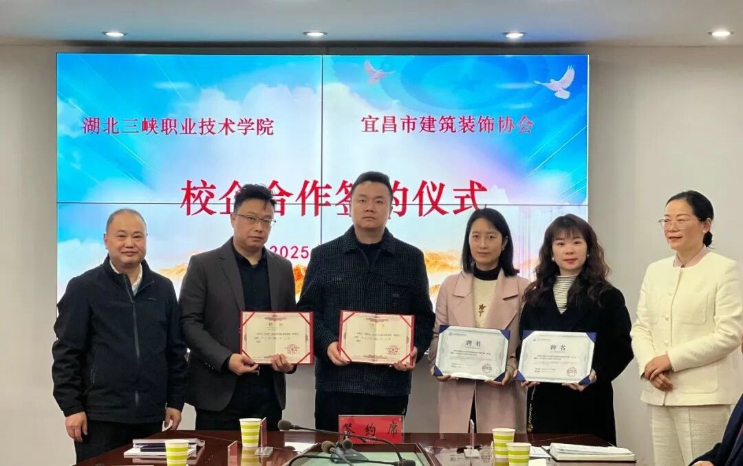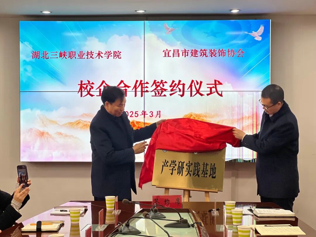 3月13日,宜昌市建筑装饰协会与湖北三峡职业技术学院产学研战略合作签约暨揭牌仪式在学院行政楼隆重举行。校企双方通过共建实践基地、互聘专家智库、联合技术攻关等系列举措,开启产教深度融合新篇章,为长江经济带建筑装饰产业高质量发展注入强劲动能。